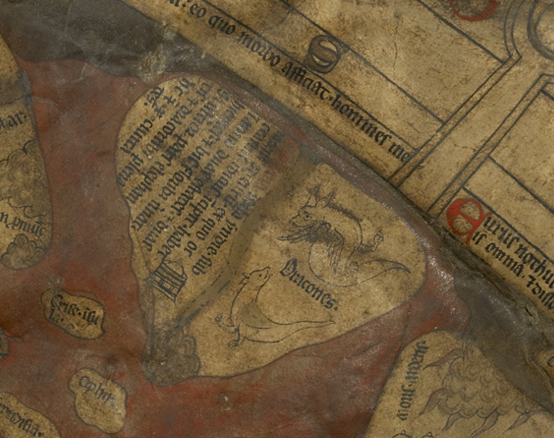 That’s not to say that medieval maps don’t picture dragons. They do. On the Hereford Map (ca. 1300), for example, two dragons appear at the tip of Asia.