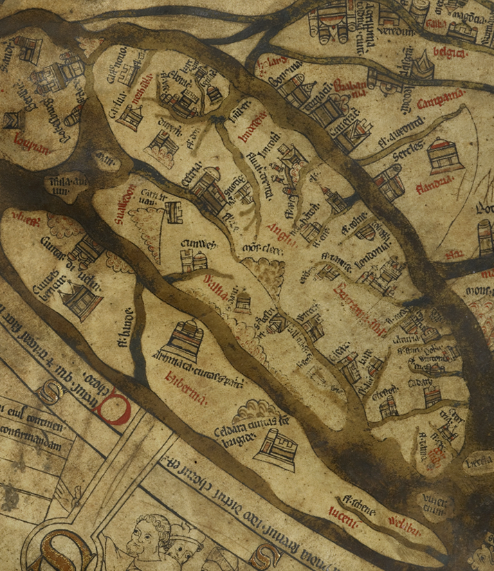 And look at England itself. On the Hereford Map, England is located on the northwestern edge of the world, in the same outer zone as the dragons and the monstrous races. Medieval historians were self-conscious about this, referring to the British Isles as “pimples on the sphere of the earth” and “the boundaries of the world.”** England’s edgy position seems to have been dreaded as much as any dragons that might be roaming the periphery of the earth.